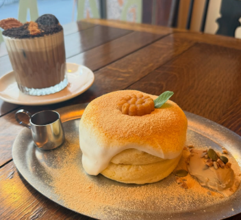 新大久保にある人気韓国カフェの2号店です。セミセルフ形式で、カウンターで注文後、ベルでドリンクを受け取り、パンケーキは店員が配膳します。