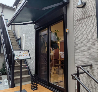 バイクは店舗前ブロック塀沿いに2台、125ccならウッドデッキ奥に2台停められます。