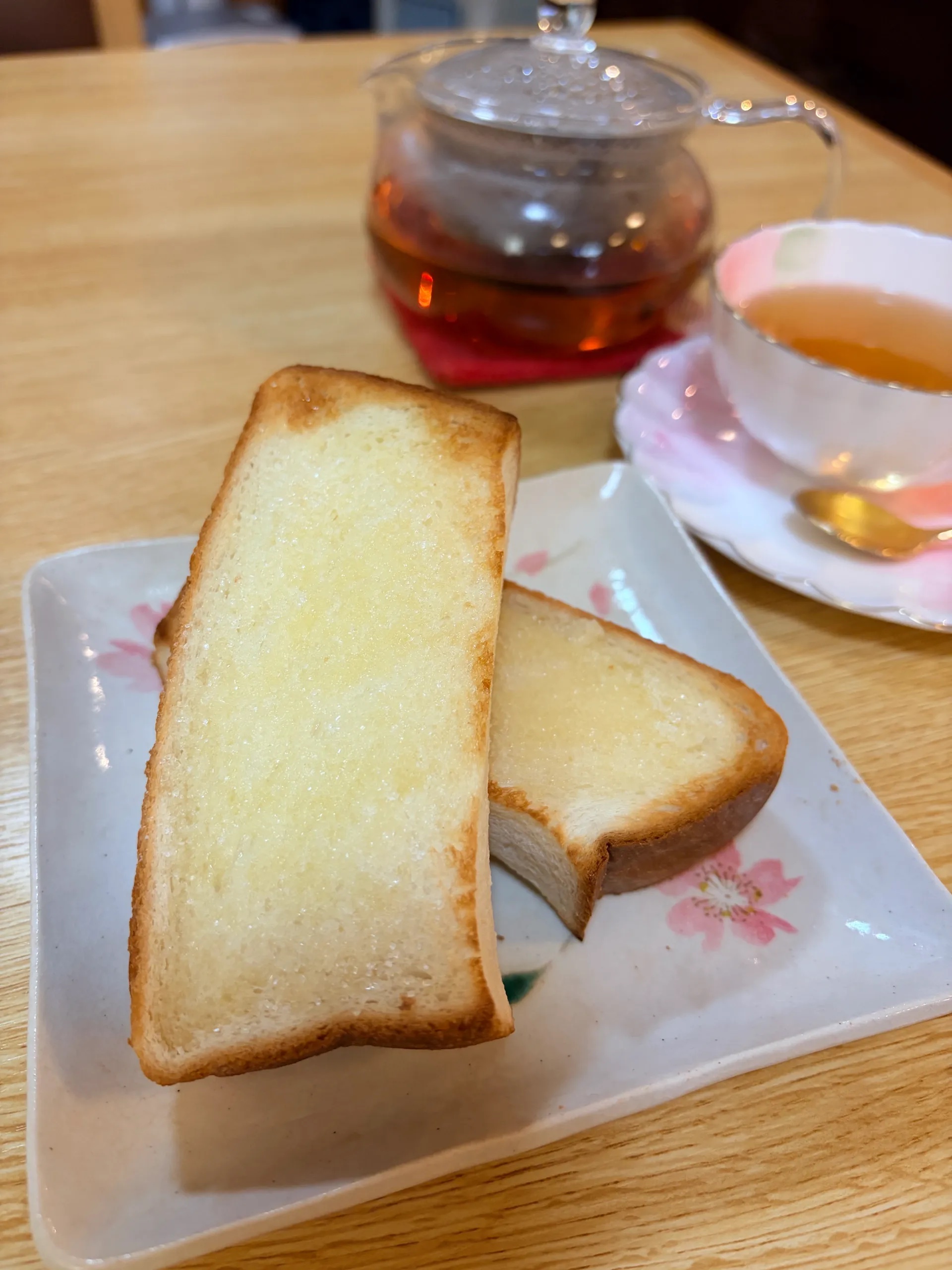 読書しながらのんびり朝カフェ☕✧ トーストと紅茶のジャルダンブルーをポットで。