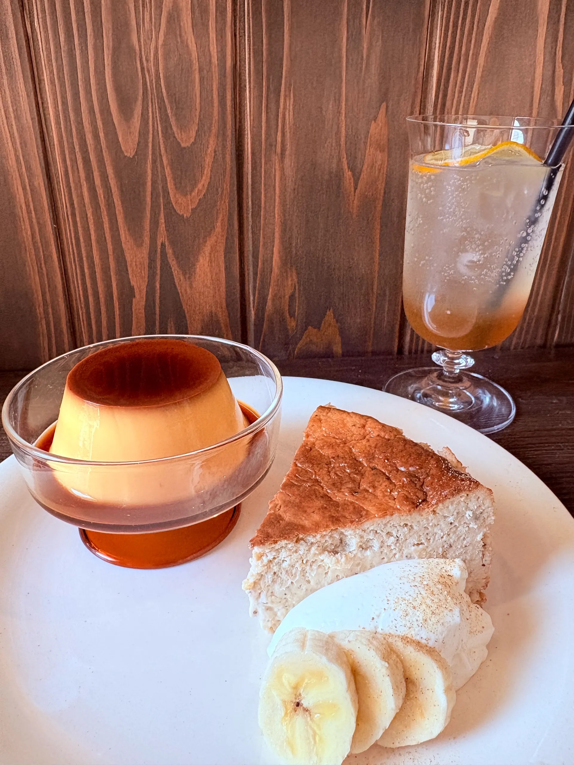 散歩日和でした💭 紅茶とバナナのバスクチーズケーキ コムモアのプリン 固めのプリン美味しすぎました🍮 紅茶とバナナの組み合わせが珍しい😳