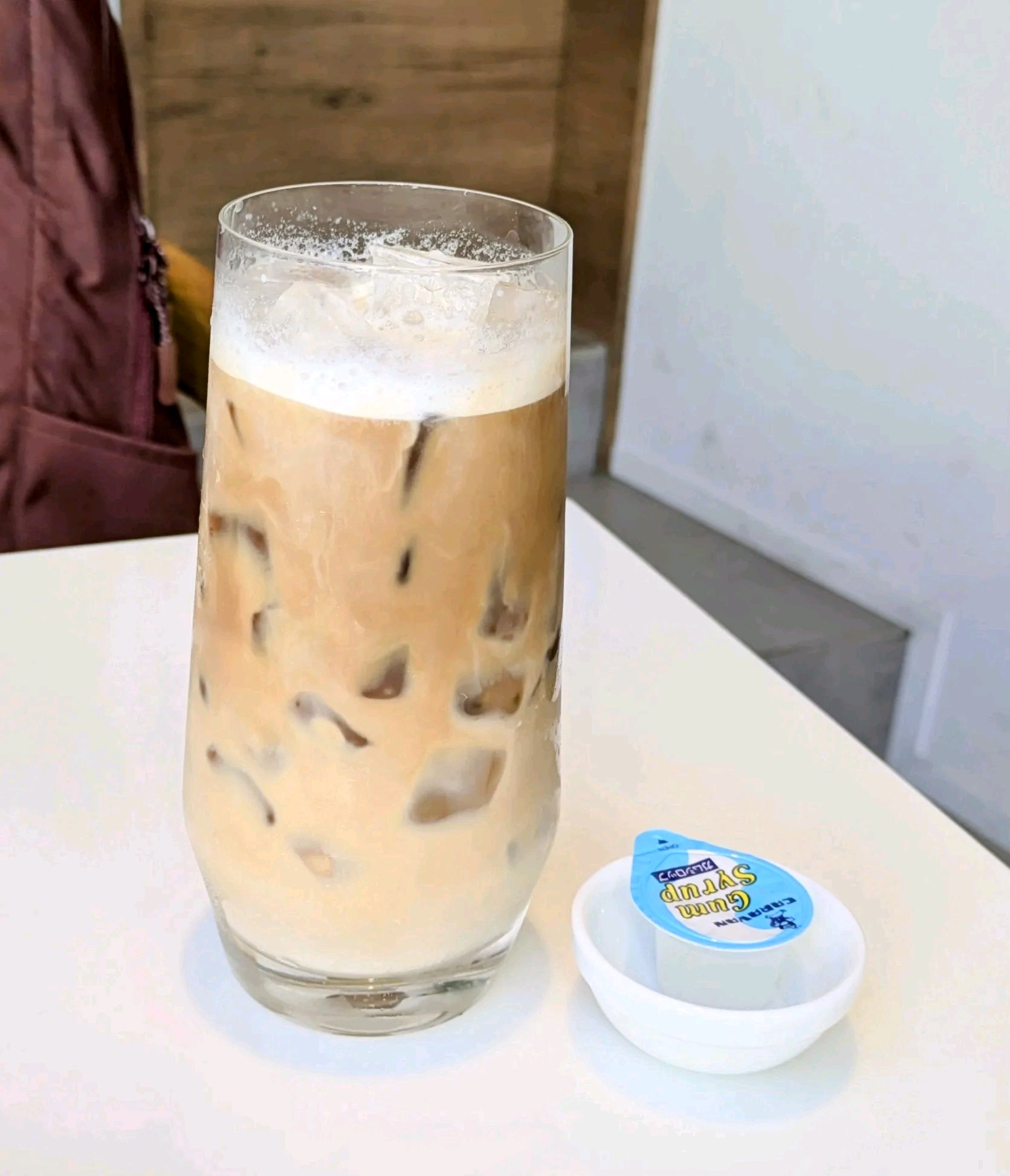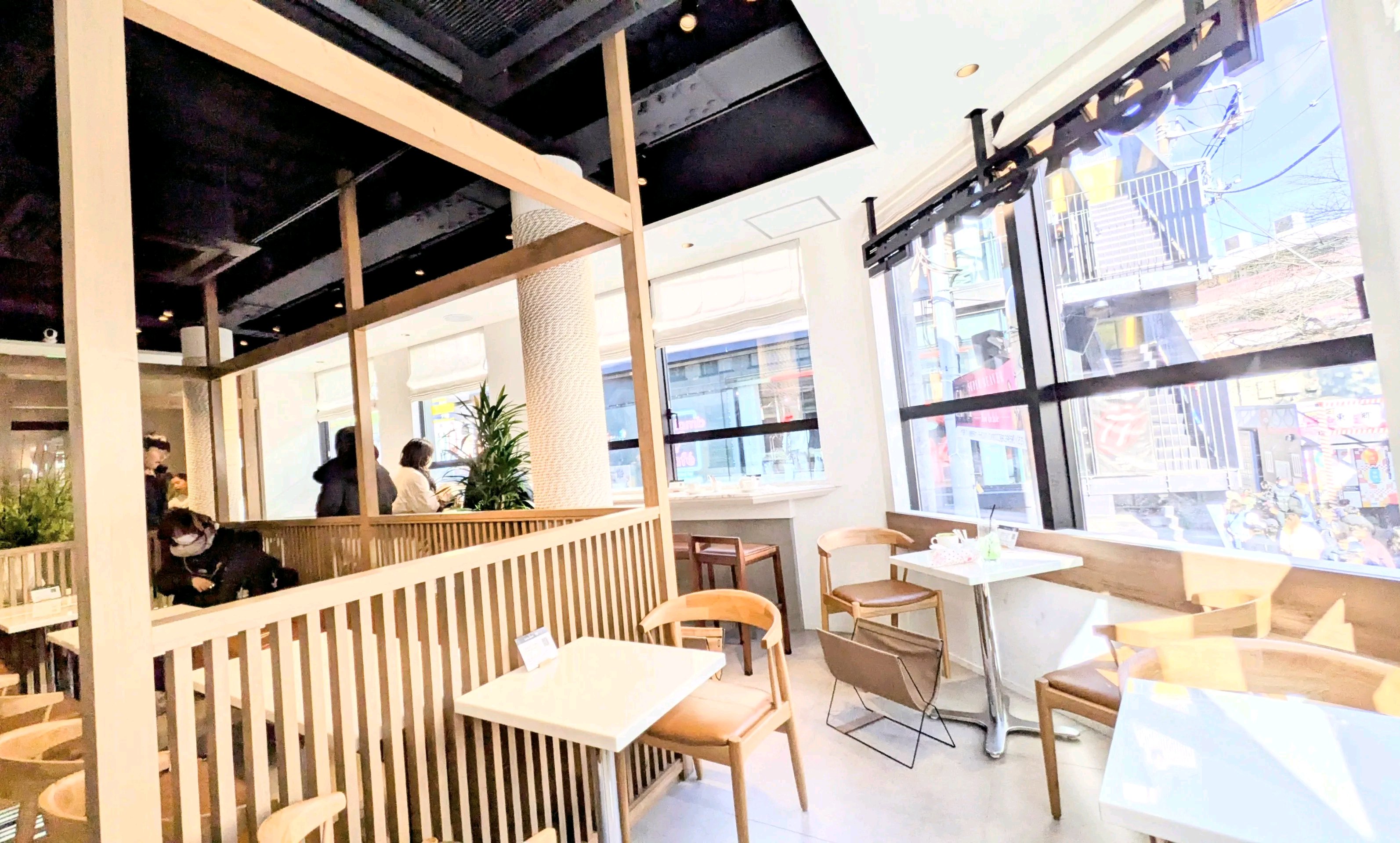 原宿から竹下通りは混んでるけど、階段上がると少し余裕ある感じですぐ入れた。 立地的に半分は外国人。 私が入ったときはわさわさ人が多かったけど、しばらくして4組ぐらいしか入ってない状態で空いてて落ち着いてた。 白い壁と机、暖色の木や色を使ってて所々観葉植物が置いてあったりしてオシャレ感のあるし新しそう。結構人の出入りはありそうだけど、店内は綺麗な状態だった。 特に小休憩程度の利用だったのでアイスカフェラテを頼んだが、来るのに10分位かかってた。 800円とかなり高かったが場所が場所なので期待しなかったけど、デカいグラスできた。 ラテ自体は3/1程度の量ですが、苦味も安っぽい味でなく、しっかりしたエスプレッソでサッパリめで美味しかった。