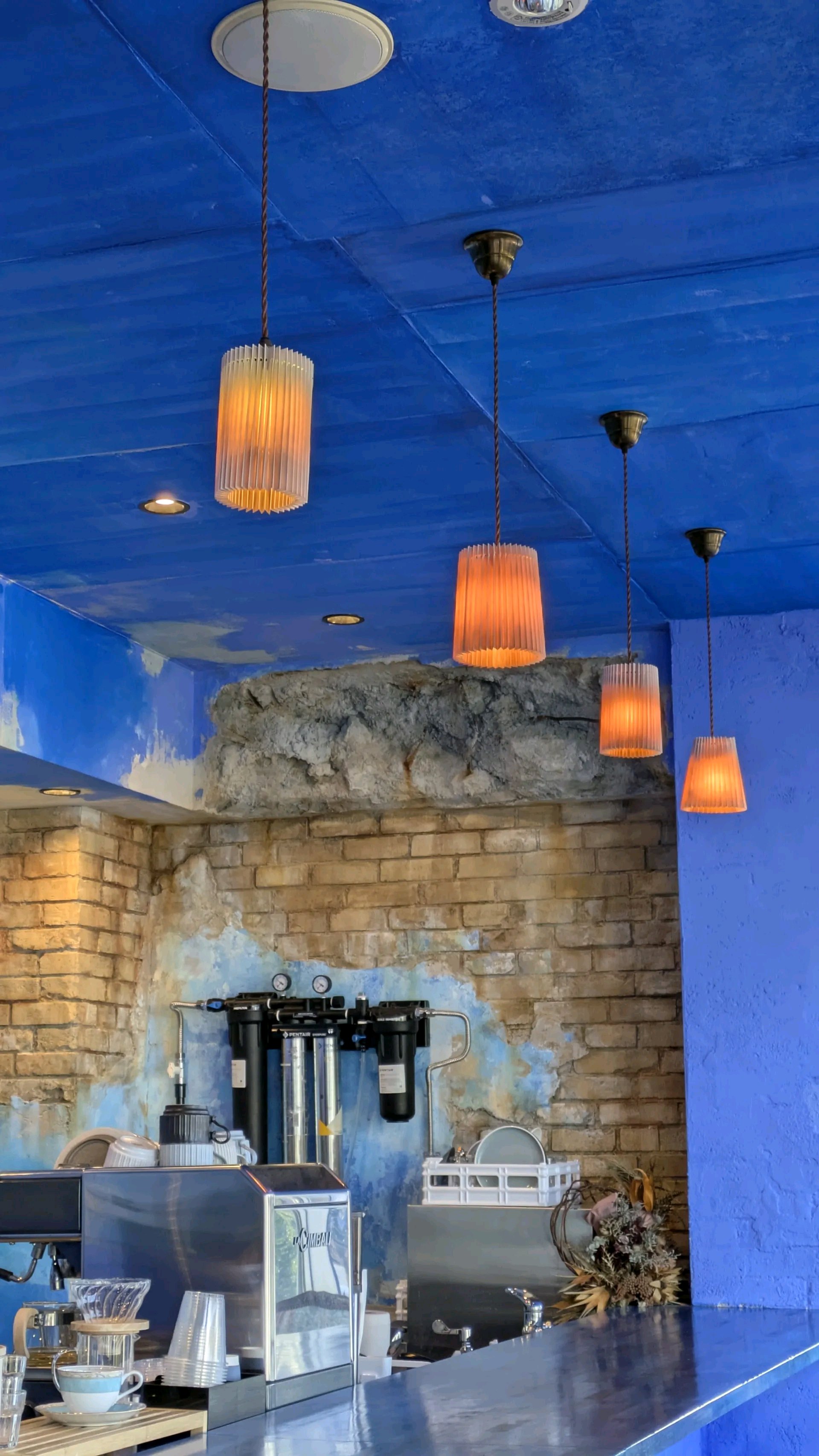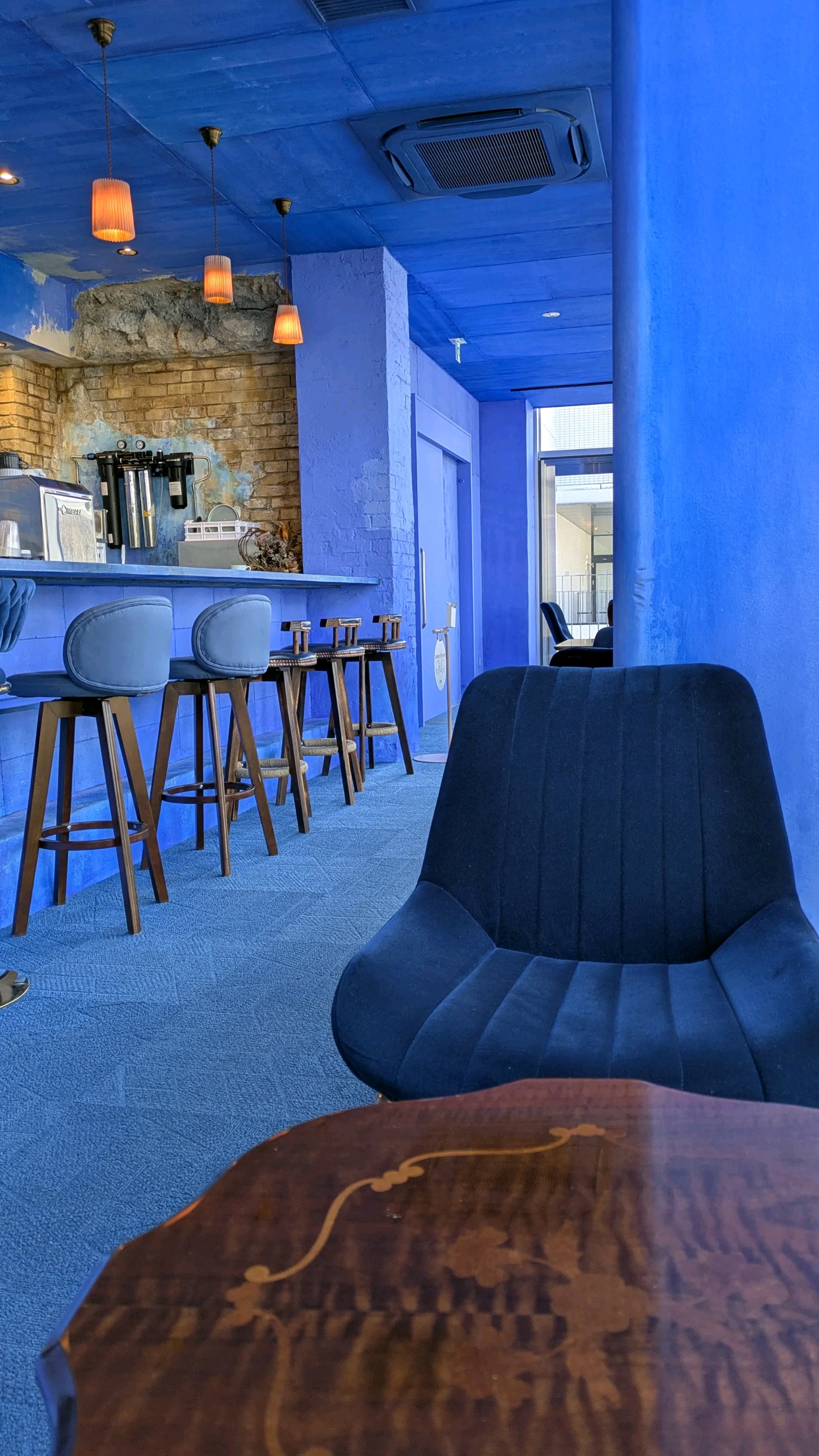 立川にある青いカフェ。 平日オープンすぐは割と空いていてしばらく一人だった。 レアチーズケーキは生クリームのような味わいでフワッとクリーミーで少し酸味がある味わい。とてもまろやかでバターのようなまろやかさが強い。 リベイクされたスコーンは外側サックリ中少しふんわりでバターの味がふんわり感じる。 お菓子と合うカフェラテのフワッとしたミルクと少し酸味を感じられるクリーミーな飲みやすいカフェラテで美味しく頂いてきた。