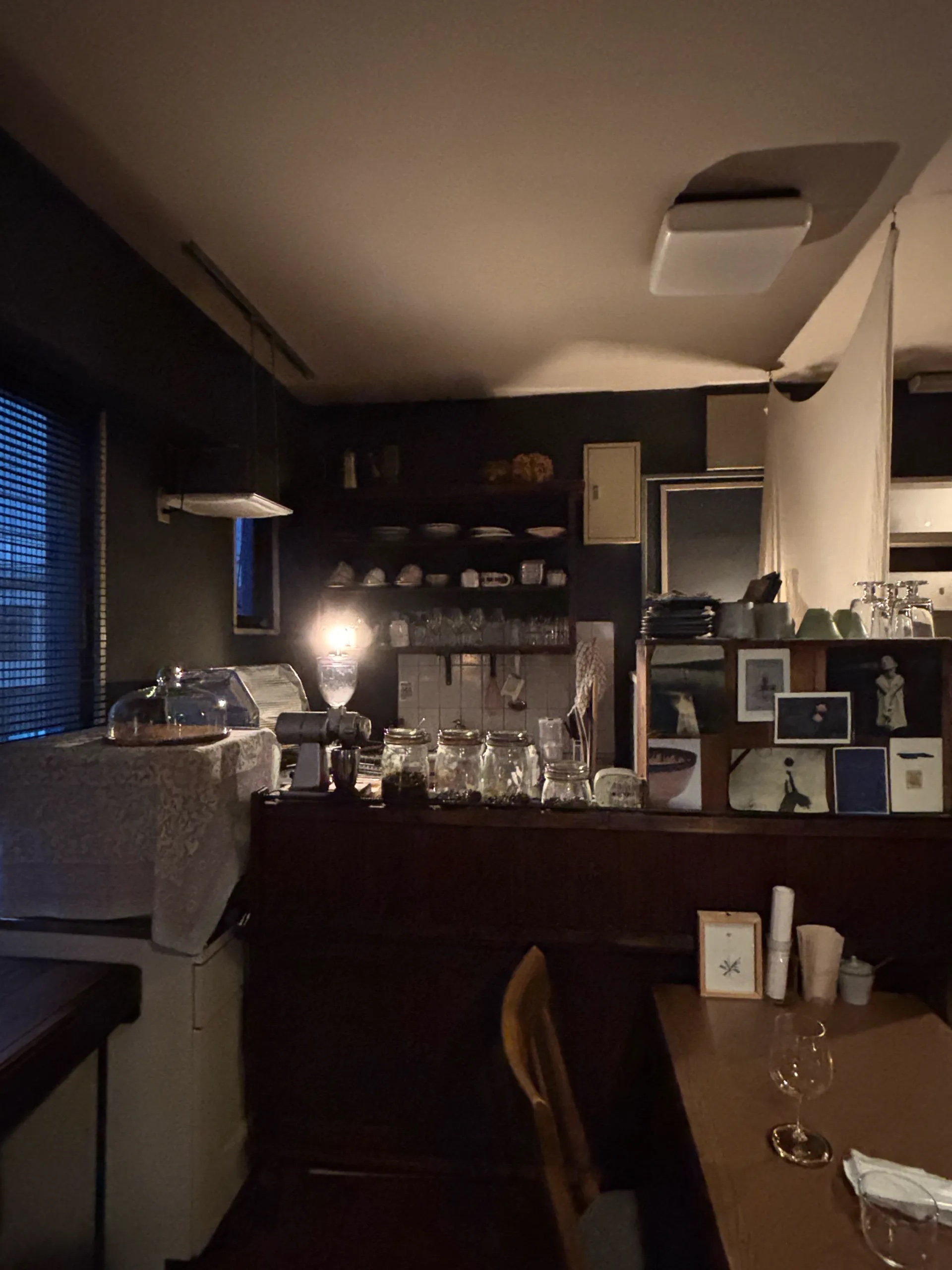 何回も行っているカフェです。 店内は静かで、暗めで、夕方は夕日が差し込んで綺麗な空を眺めることができます。 本を読んだり、考えごとをするのに適した空間です。