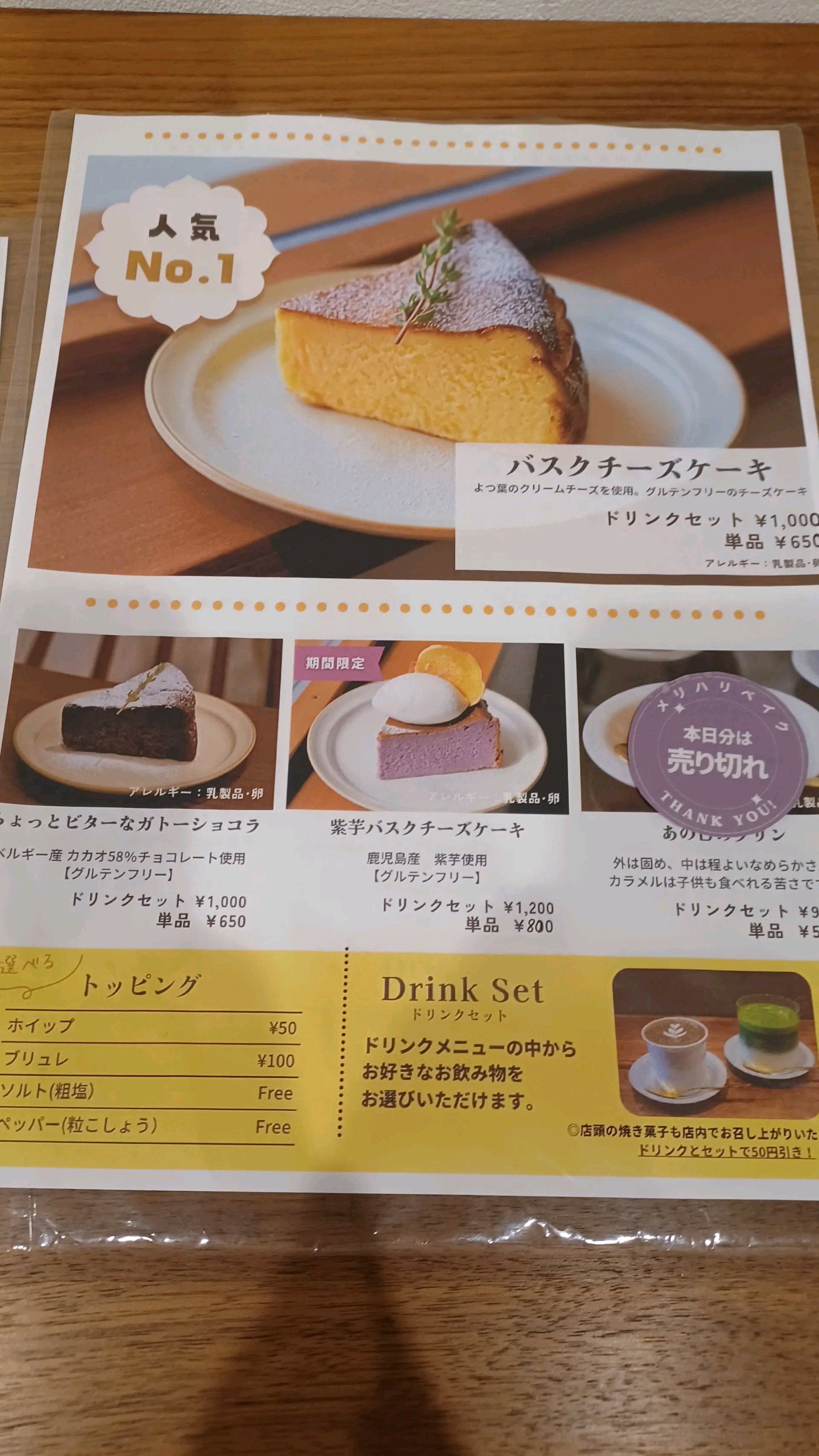 昨日1周年だったそうで、情報発信系のアカウントの方の投稿を見て行ってきた。 今回は待ちなく入れて前はなかった入り口の窓際の席ができていた。 前回はベイクドチーズケーキとほうじ茶ラテ頼んでたので今回は別の物に。 抹茶ラテはしっかり抹茶の味が濃くてオーツミルクに変えたこともあって抹茶の美味しい苦味と香ばしさのバランスが良く、ほどほどに口に味が残る味わいも良いと思う。 少しのんびりしようと思って、2杯目はオリジナルブレンドを注文。 苦味と酸味も美味しく飲みやすい。